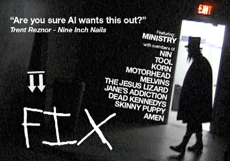 J-F Pilon, un de nos lecteurs m’a parlé aujourd’hui de FIX, un documentaire sur Ministry. J’avais vu une nouvelle sur le documentaire il y a longtemps mais l’avait complètement oublié. En effet le film était supposé sortir cet été mais… non. Sur la page Facebook, on indique une sortie pour janvier 2011. Bref, le site est plus intéressant qu’il l’était à son annonce en 2009. On a maintenant des trailers et photos! Très hâte de voir ça, étant un fan fini de Ministry.