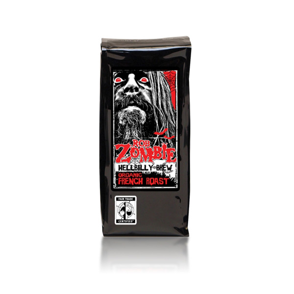 WTF? C’est quoi le lien entre Rob Zombie et le café? Quand je pense à lui je ne pense tellement pas à une tasse de café… Il pourrait vendre du maquillage, des masques, des décorations d’halloween, des monstres en gélatine ou des vibrateurs en forme de Dracula à la limite. Mais du café???