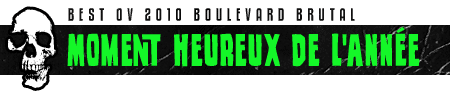 Pour plusieurs, l’année 2010 a été synonyme d’arnaques et de mauvaises nouvelles. Ça n’a pas été une très bonne année pour le métal non plus. La cuvée 2010 n’est pas mauvaise, mais disons qu’elle a été relativement ternie par plusieurs décès. Impossible d’oublier des gars comme DIO, Peter Steele et Paul Gray. Impossible aussi d’oublier certains albums, spectacles, personnalités, riffs, moments ridicules, surprises, pochettes et autres catégories que nous allons couvrir dans ce premier BEST OV de la jeune histoire de Boulevard Brutal. Enjoy!