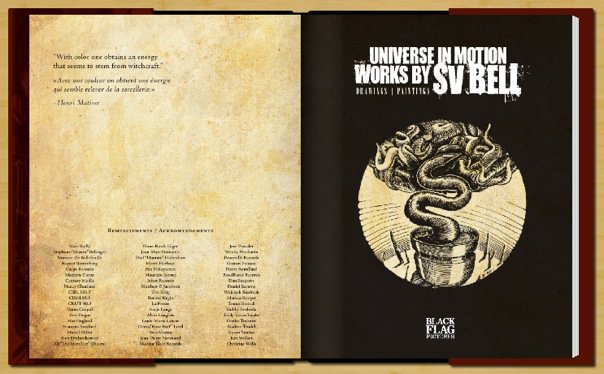 Si vous voulez en connaitre plus sur lui, je vous invite à visiter le site de sa compagnie : Black Flag Pictures. De plus, il a sorti un livre sur ses pièces artistiques : Universe in Motion – Works by Sv Bell. Un foutu beau livre! (que je devrais me procurer d’ailleurs – désolé Sv). C’est un honneur pour nous de l’avoir sur Boulevard Brutal.