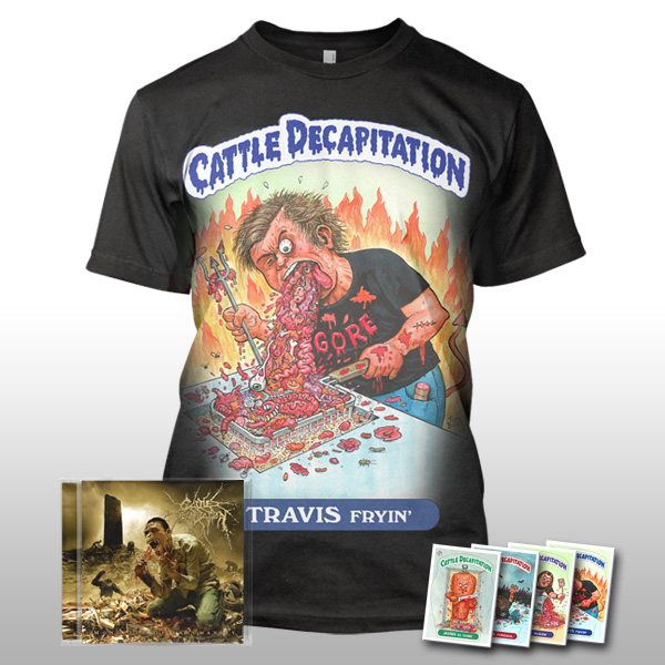 Un grand classique de ma jeunesse ces cartes de Garbage Pail Kids. Ça existe encore en plus! J’ai été surpris de voir ça. J’pensais que c’était mort depuis plusieurs années. Voilà donc un beau flash de la part du band Cattle Decapitation avec une série de t-shirts.