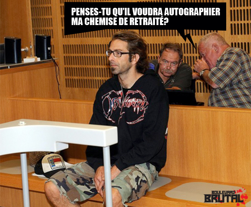 Funny shit, Tragique Affaire Randy Blythe – Qu’est-ce qu’ils disent les bonshommes en arrière? sebbrutalle11 juillet 2012/0 comments Cette photo circule depuis le début des procédures et je me suis toujours demandé ce qu’ils disaient les monsieurs. Voici quelques suggestions. Et vous, qu’est-ce que vous pensez qu’ils disent? La suite demain. Évaluer :Partagez cet article! Cliquez pour partager sur Facebook(ouvre dans une nouvelle fenêtre) Facebook Cliquez pour partager sur X(ouvre dans une nouvelle fenêtre) X Cliquez pour envoyer par courriel à un ami(ouvre dans une nouvelle fenêtre) Courriel J'aime chargement… Tagged: Lamb of God Randy Blythe randy blythe court