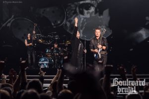 Boulevard Brutal qui va voir Three Days Grace et Disturbed un vendredi soir, à Laval?!? Méchant beau plan pour perdre notre crédibilité ça hein? Écoutez chers amis, parfois, il faut écouter son coeur et rejoindre les milliers de fidèles pour communier. Là, tu penses qu’on est allé à la messe hein? J’vais te le dire, c’était pas mal le feeling qu’on avait en écoutant le beau David parler à ses fans. C’est que vois-tu, il fait un peu preacher sur les bords l’homme au grand manteau.
