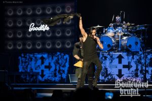 Une soirée ponctuée de gros riffs, de feu, de messages d’amour et d’espoir, mais surtout, un appel à l’entraide vis-à-vis les gens aux prises avec la dépression. What?! Effectivement, c’est sur le grand écran que David Draiman a invité les gens à demander de l’aide quand ça ne va pas bien — pour ensuite se diriger vers une toute petite scène tout près de la foule le temps de deux chansons. On ne peut pas être contre ce message important. Si vous ne feelez pas bien, parlez-en. Disons que l’intégration avec les numéros de téléphone et tout était pour le moins… surprenante.